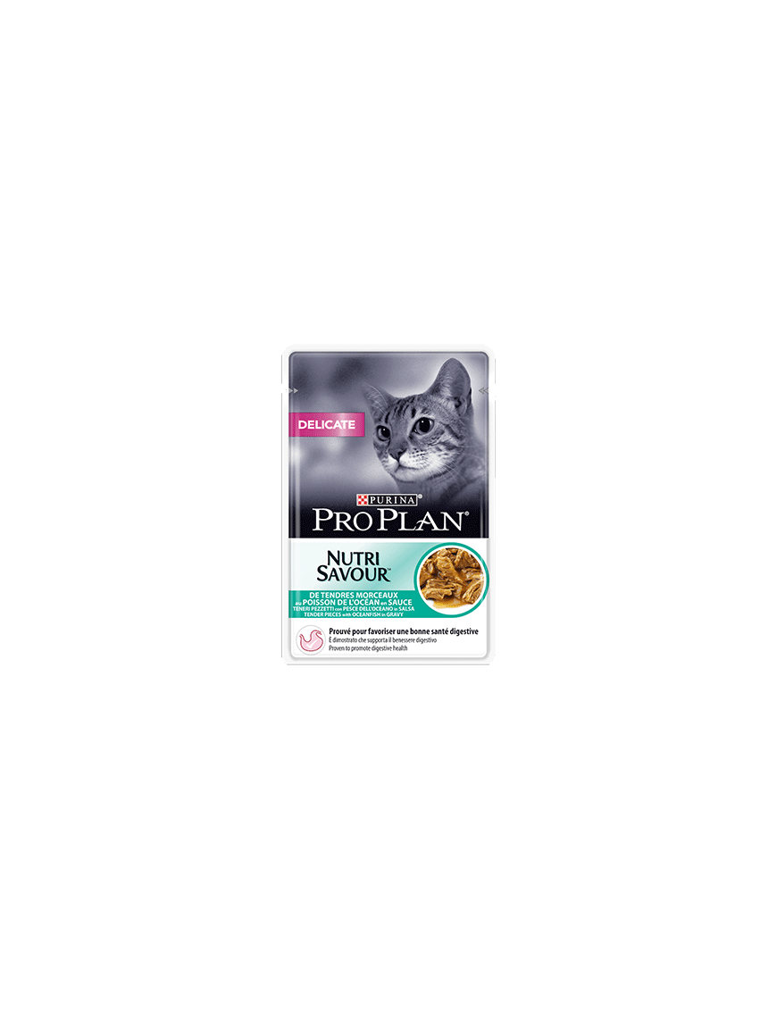 Karma dla kotów Pro Plan Delicate ryba ocean 85g.PRO PLAN® DELICATE zawiera przeciwutleniacze i witaminy, które wspierają układ odpornościowy dorosłego kota, a także unikalną formułę OPTIRENAL®, która pomaga dbać o zdrowie nerek kota. Smakowita receptura karmy PRO PLAN® DELICATE, dzięki wysokiej jakości składnikom, usatysfakcjonuje nawet bardzo wybredne koty.