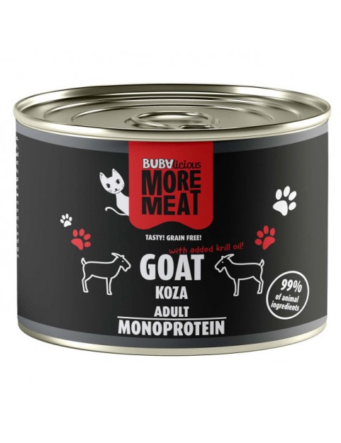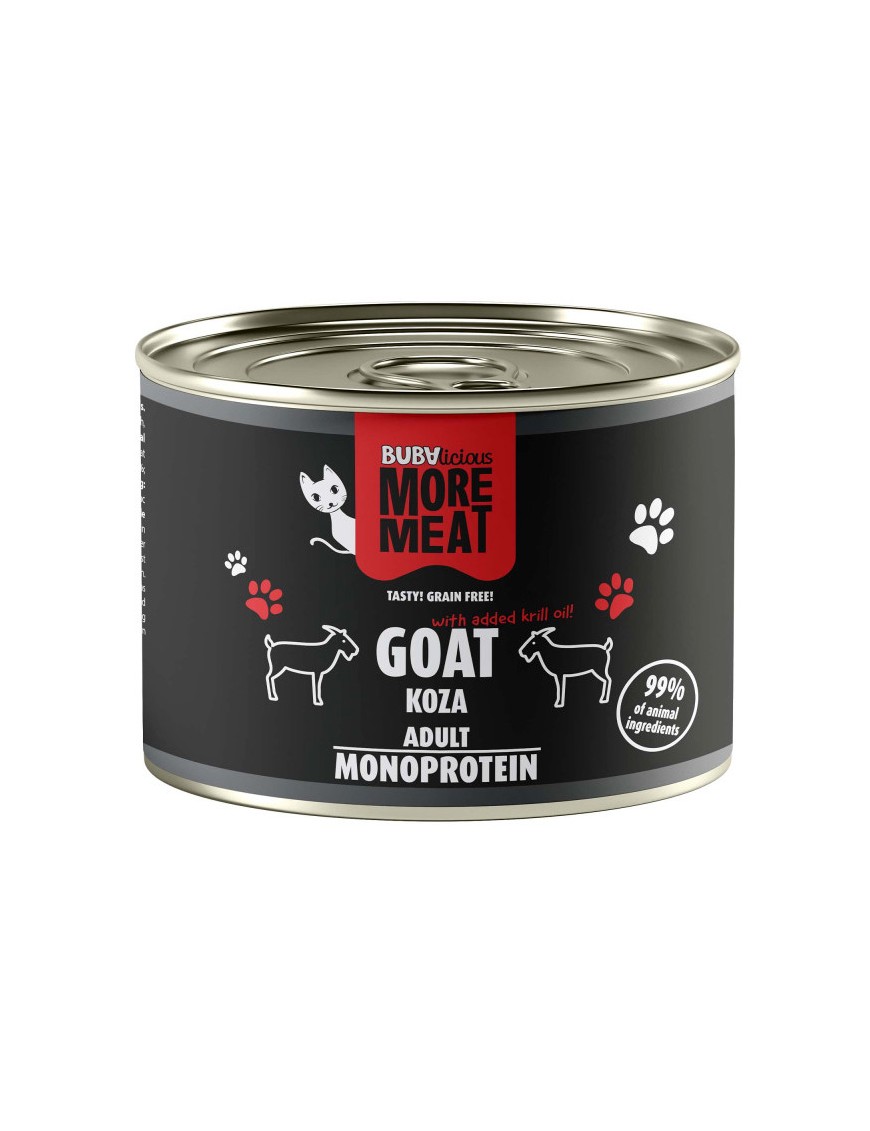 Wybierz czystość i delikatność natury. Zadbaj o zdrowie, energię i dobre samopoczucie swojego kota, serwując mu BUBAlicious More Meat z kozy – pełnoporcjowy, smakowity posiłek stworzony z miłości do zwierząt.