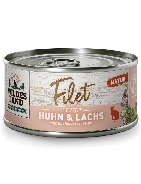 Okaż swojej kotce miłość w najczystszej postaci natury! Wildes Land Filet Kurczak & Łosoś z dynią i pietruszką to połączenie smaku, zdrowia i jakości – idealne dla kotów, które zasługują na to, co najlepsze.