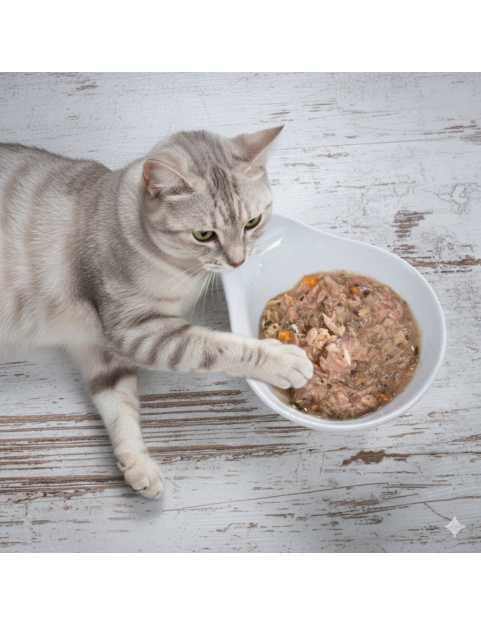 Ta uzupełniająca karma dostarcza wysokiej jakości białka zwierzęcego z kurczaka i łososia – wspierającego zdrowe mięśnie, energię i lśniącą sierść. Dodatek dyni wspomaga trawienie i dostarcza naturalnych przeciwutleniaczy, a pietruszka wspiera świeży oddech i zdrowie układu moczowego. Receptura bez zbóż, cukru i sztucznych dodatków to gwarancja najwyższej jakości i bezpieczeństwa żywienia Twojego kota.