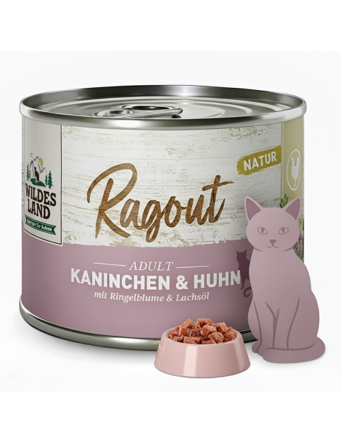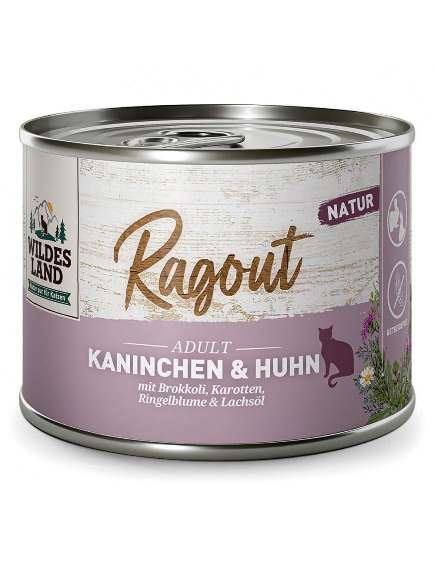 Pozwól swojemu kotu odkryć smak natury w najbardziej apetycznej formie! Wildes Land Ragout Królik & Kurczak to wyjątkowa mokra karma, w której soczyste kawałki mięsa z królika i kurczaka łączą się z warzywami – brokułami i marchewką – tworząc zbilansowany, naturalny posiłek. Delikatnie gotowane w aromatycznym bulionie składniki zachowują swoje wartości odżywcze i naturalny smak, który pokocha każdy koci smakosz.