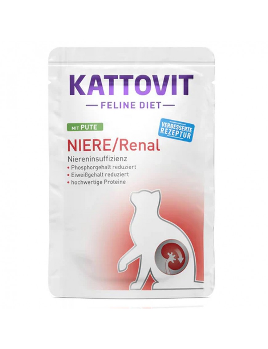 Specjalistyczna dieta wspierająca zdrowie nerek Twojego kota. Kattovit Niere/Renal z Indykiem to pełnoporcjowa, dietetyczna karma opracowana z myślą o kotach cierpiących na przewlekłą niewydolność nerek lub mających skłonność do tworzenia się kamieni szczawianowych. Dzięki zredukowanej zawartości białka, fosforu i sodu karma wspiera prawidłowe funkcjonowanie nerek i chroni organizm przed nadmiernym obciążeniem metabolicznym.