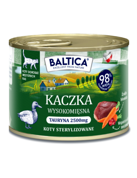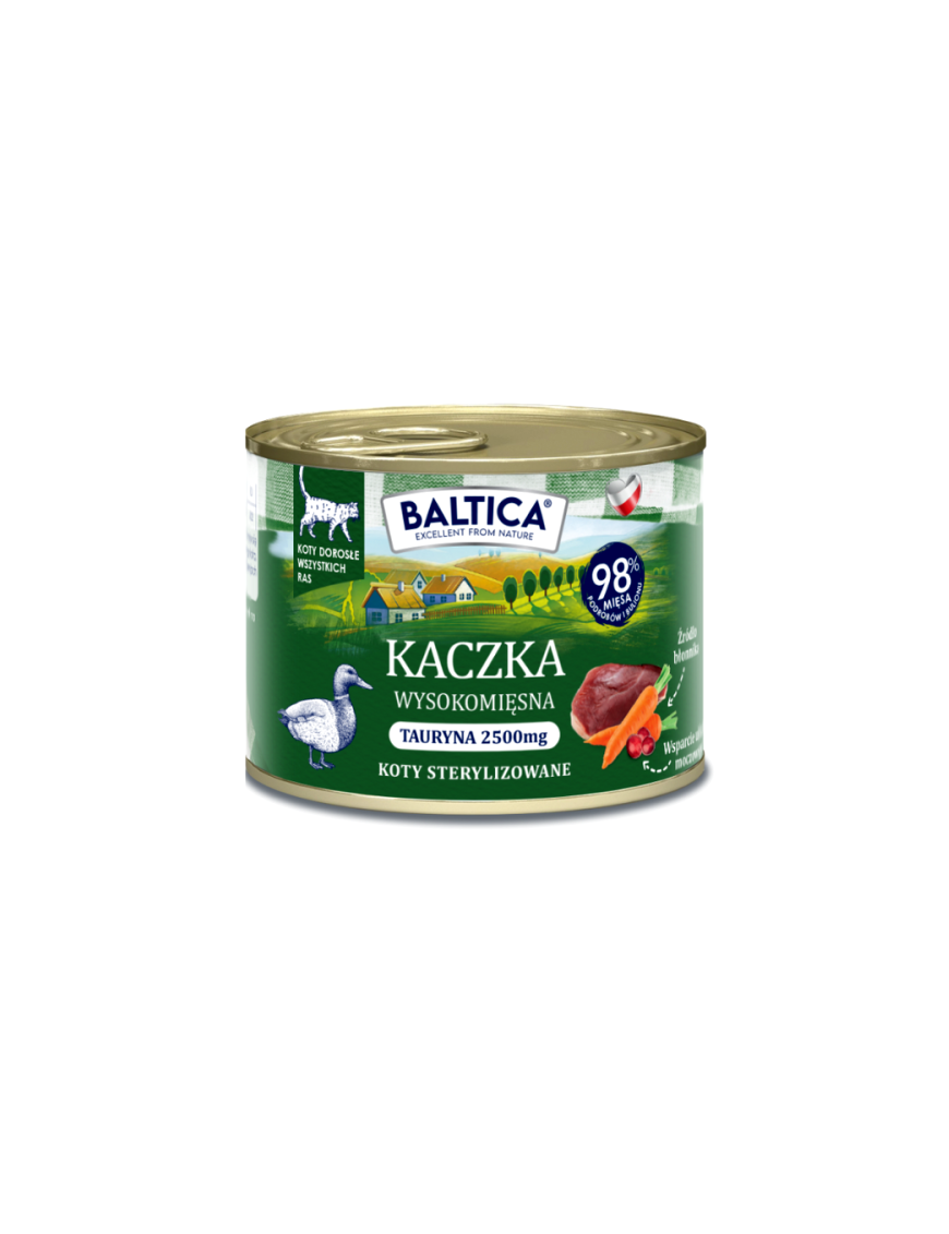 Baltica Smaki Regionów Kaczka to mokra karma klasy premium dla dorosłych kotów, łącząca naturalne składniki, funkcjonalne nutraceutyki i wyjątkowy smak. Doskonały wybór dla opiekunów, którzy chcą zapewnić swojemu kotu zdrowie, odporność i przyjemność z każdego kęsa – naturalnie, każdego dnia.
