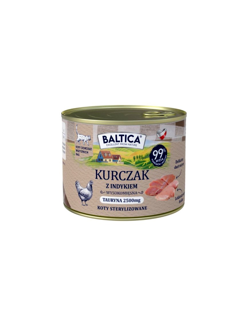 Naturalna równowaga i delikatność w jednym posiłku. Baltica Smaki Regionów Kurczak z Indykiem to bezzbożowa, duoproteinowa mokra karma klasy super premium, opracowana z myślą o dorosłych kotach wszystkich ras – także po sterylizacji i z wrażliwym układem pokarmowym. Połączenie lekkostrawnego kurczaka i delikatnego indyka dostarcza pełnowartościowego białka, niezbędnego do utrzymania zdrowych mięśni i doskonałej kondycji kota.