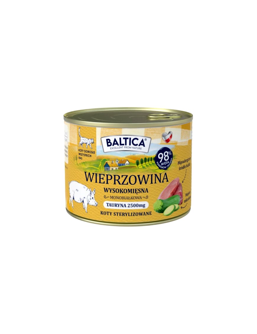 Naturalna energia i wyjątkowy smak w codziennej diecie. Baltica Smaki Regionów Wieprzowina to pełnoporcjowa, bezzbożowa karma monoproteinowa, opracowana specjalnie z myślą o dorosłych kotach wszystkich ras – także po sterylizacji i z wrażliwym układem trawiennym. Delikatne mięso wieprzowe dostarcza wysokiej jakości białka, które wspiera utrzymanie masy mięśniowej oraz procesy regeneracyjne organizmu.