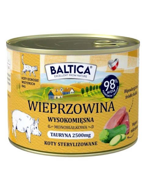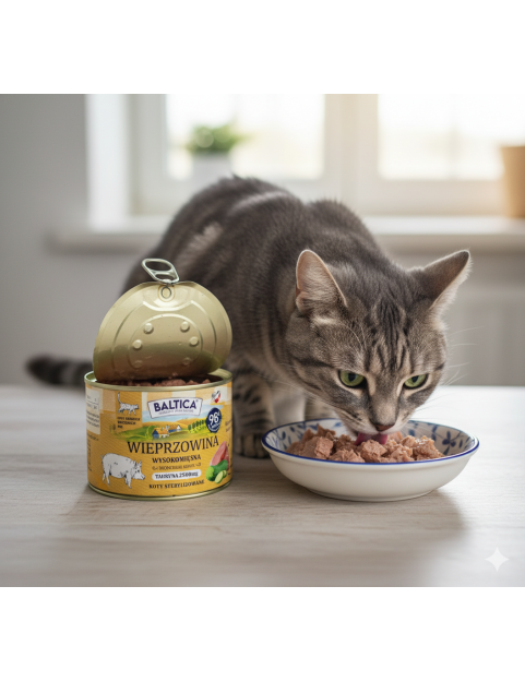 Baltica Smaki Regionów Wieprzowina to naturalna, smakowita i pełnowartościowa mokra karma dla dorosłych kotów. Doskonale sprawdzi się jako codzienny posiłek dla mruczków z wrażliwym żołądkiem, po sterylizacji lub z alergiami pokarmowymi – zapewniając im zdrowie, energię i doskonałe samopoczucie każdego dnia.