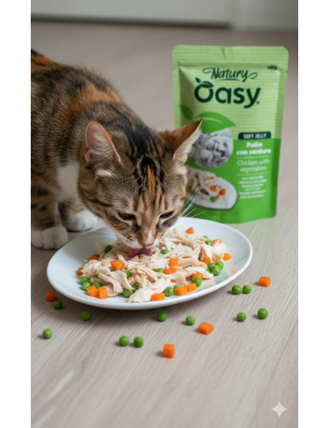 Bo zdrowa dieta kota to równowaga natury w każdym kęsie. Oasy Cat Natury z kurczakiem i warzywami to pyszna, lekkostrawna karma stworzona z myślą o codziennym żywieniu pełnym wartości odżywczych i naturalnego smaku. Delikatny kurczak w połączeniu z marchewką i groszkiem to idealna kompozycja dla kotów, które lubią różnorodność i świeżość.