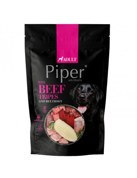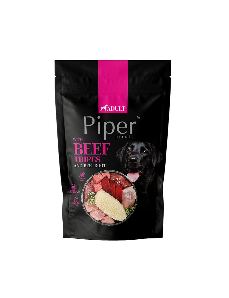 Postaw na naturalne żywienie i zdrową energię. Wybierz Piper Animals z żołądkami wołowymi i burakiem – karmę, która wspiera odporność, trawienie i codzienną witalność Twojego psa.