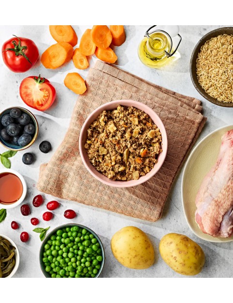 W składzie znajduje się mięso z indyka (min. 50%) – lekkostrawne źródło białka o niskiej zawartości tłuszczu, idealne dla psów o wolniejszym metabolizmie. Karma wzbogacona została o olej z łososia, dostarczający cennych kwasów tłuszczowych Omega-3 i Omega-6, które wspierają pracę serca, zdrowie skóry oraz lśniącą sierść. Dodatek warzyw i ryżu dostarcza naturalnych witamin i błonnika, a glukozamina i chondroityna pomagają utrzymać elastyczne i silne stawy.