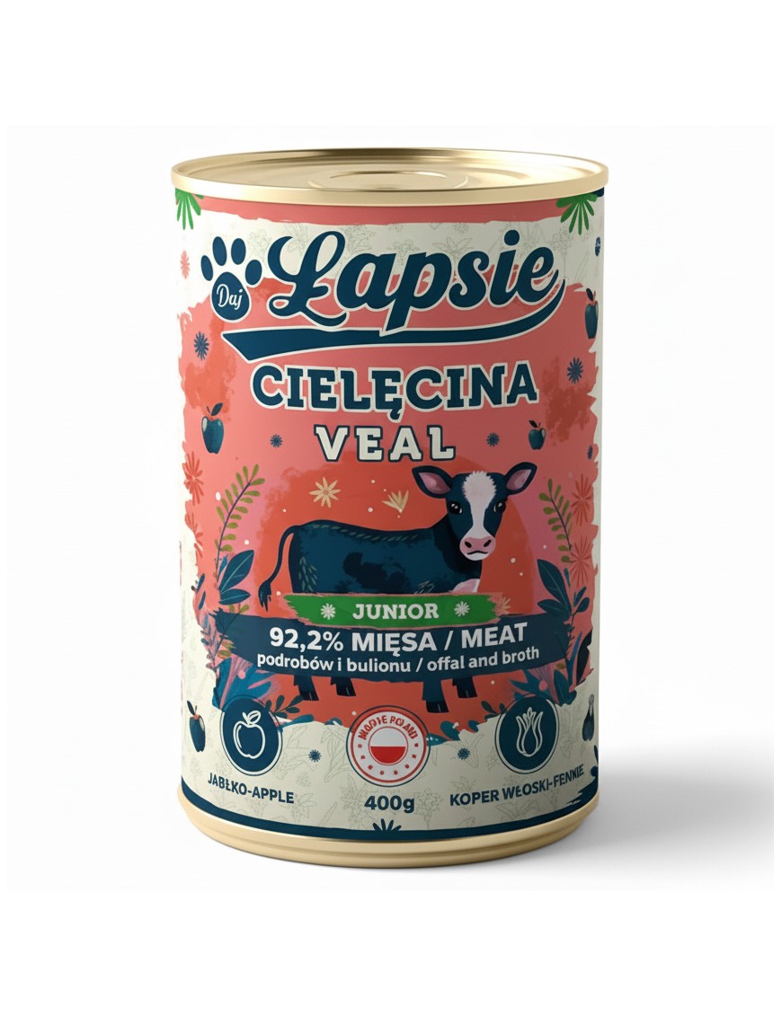 Pokaż swojemu maluchowi, jak bardzo go kochasz. Wybierz Łapsie Mono Junior z cielęciną – codzienną porcję zdrowia, smaku i troski w jednej misce. Twój szczeniak odwdzięczy się radością i energią każdego dnia!