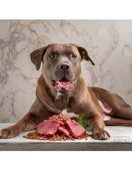 92,2% wołowina (47% mięso, 25,2% bulion, 20% podroby: płuca, wątroba, tchawice), 6% morela, 1% minerały, 0,3% nać pietruszki, 0,2% olej z łososia, 0,1% siemię lniane, 0,1% małż nowozelandzki, 0,1% suszone drożdże piwne.