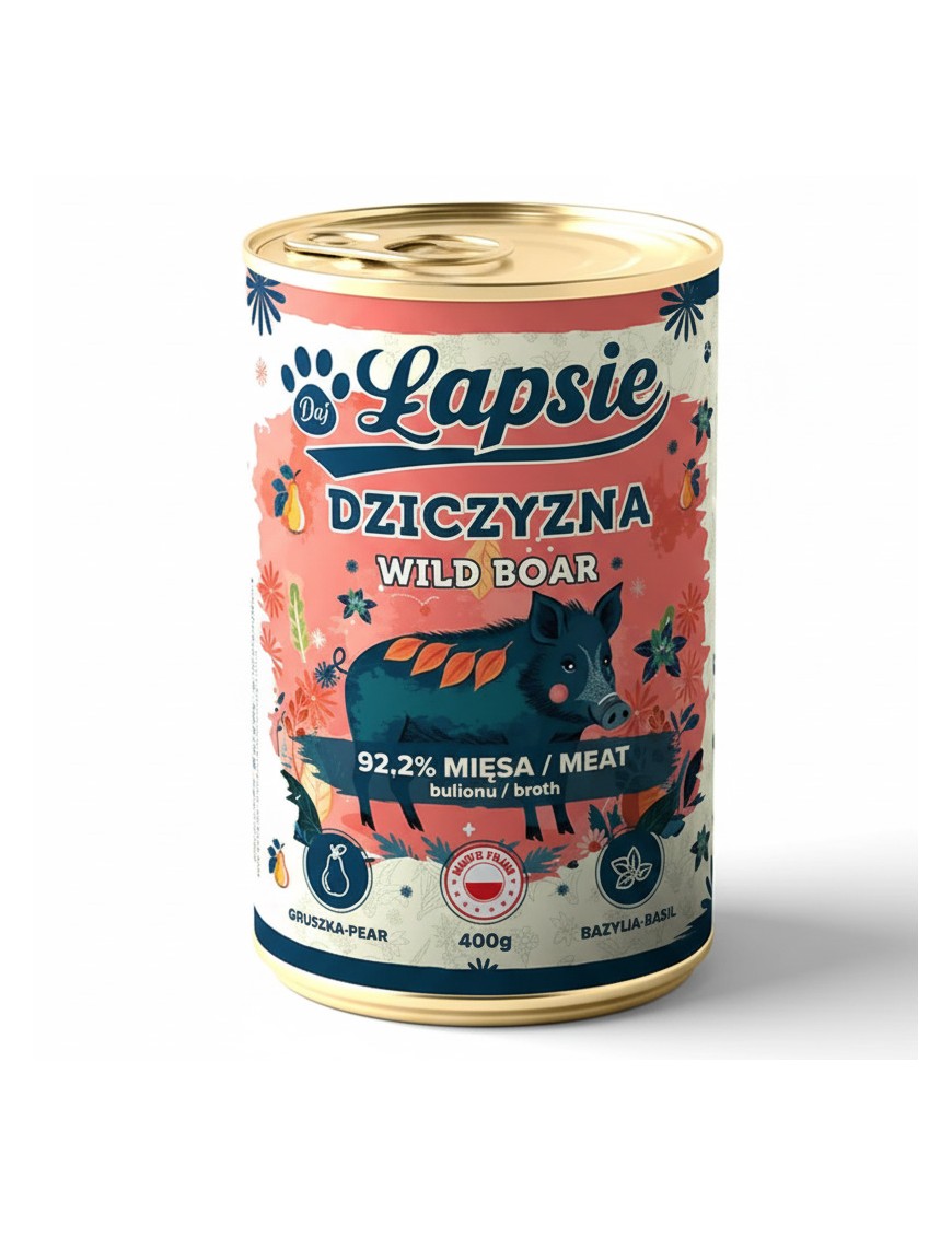 Smak natury prosto z polskich lasów – dla Twojego psa. Łapsie Mono z dzikiem i gruszką to wyjątkowa, pełnoporcjowa karma mokra, która łączy delikatność dziczyzny z subtelną słodyczą gruszki. Inspirowana naturą, stworzona dla psów ceniących smak, energię i zdrowie. Lekkostrawna, naturalna i aromatyczna – to codzienna porcja miłości w misce Twojego pupila.