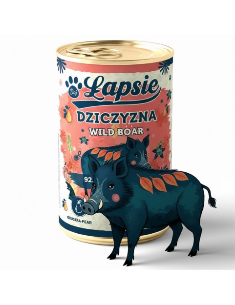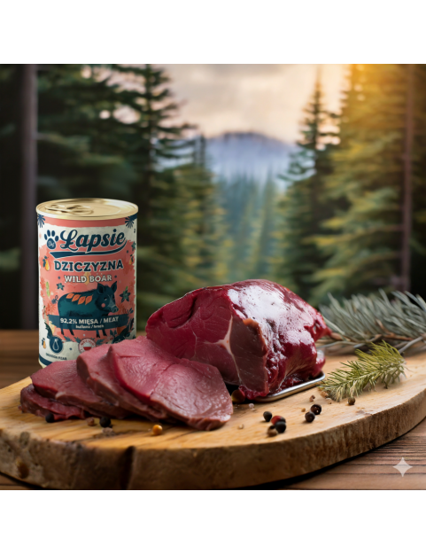 Podaruj swojemu psu smak dzikiej natury. Wybierz Łapsie Mono z dzikiem i gruszką – lekkostrawną, odżywczą karmę, która zamieni każdy posiłek w pachnącą leśną ucztę pełną zdrowia i radości!