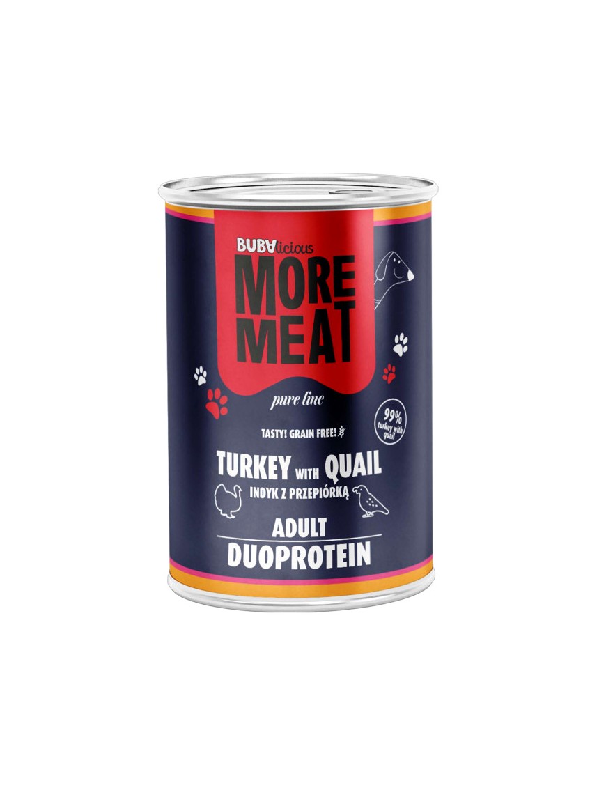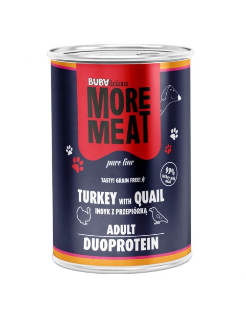 Postaw na czystość składu i naturalne odżywienie! BUBAlicious More Meat Pure Line z indyka i przepiórki to smak, który pokocha Twój pies – i pewność, że w jego misce jest tylko to, co naprawdę wartościowe.