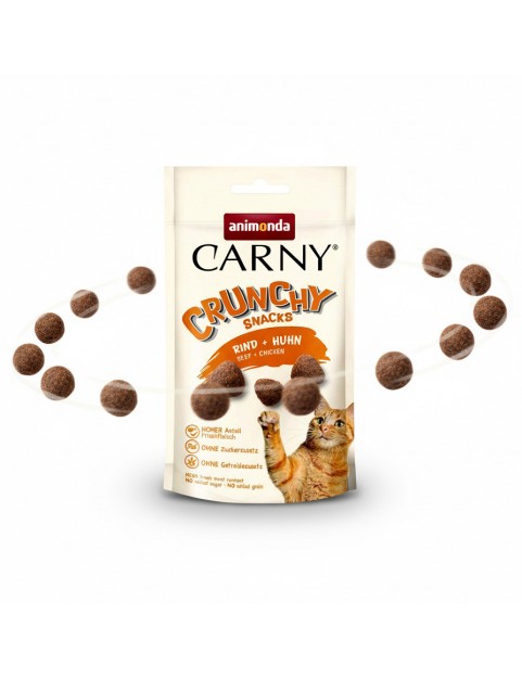 Mięsna przyjemność w każdym chrupnięciu! Animonda Carny Snacks Wołowina i Kurczak to smakowity, chrupiący przysmak dla dorosłych kotów, który dostarcza naturalnej energii i radości każdego dnia. Wykonany z prawdziwego mięsa wołowego i drobiowego, stanowi idealną nagrodę lub małą przekąskę między posiłkami. To sposób na zdrowe rozpieszczanie – bez kompromisów w jakości.