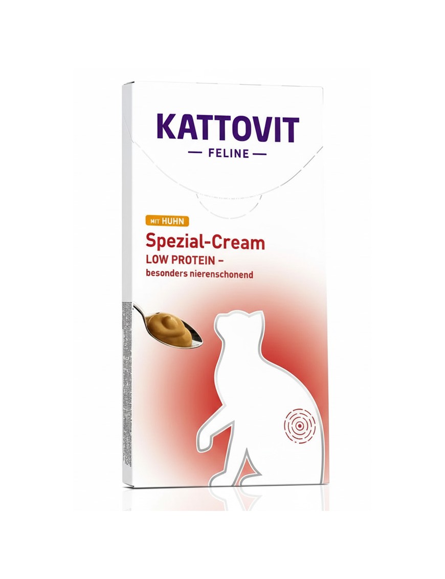 Kattovit Renal Low Protein Cream to specjalistyczny kremowy przysmak opracowany z myślą o kotach z problemami nerkowymi. Zawiera obniżony poziom białka i zbilansowaną zawartość fosforu, co pomaga odciążyć nerki i wspiera ich prawidłowe funkcjonowanie. Lekka, pyszna formuła z kurczakiem sprawia, że jest to idealny przysmak dla kotów wymagających diety nerkowej.