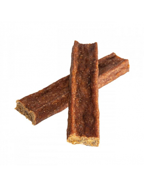Ten gryzak powstaje w 100% z suszonej skóry wołowej, bez sztucznych konserwantów, barwników czy ulepszaczy. Delikatne suszenie pomaga zachować wartości odżywcze i naturalny aromat mięsa. To bogate źródło białka zwierzęcego – kluczowego budulca mięśni, wspierającego witalność i kondycję Twojego psa.