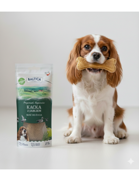 Zachęta do zakupu: Spraw swojemu psu naturalną radość żucia – wybierz kość Baltica z kaczką i jabłkiem ??. Dodaj do koszyka i podaruj swojemu pupilowi smakowitą nagrodę już dziś!