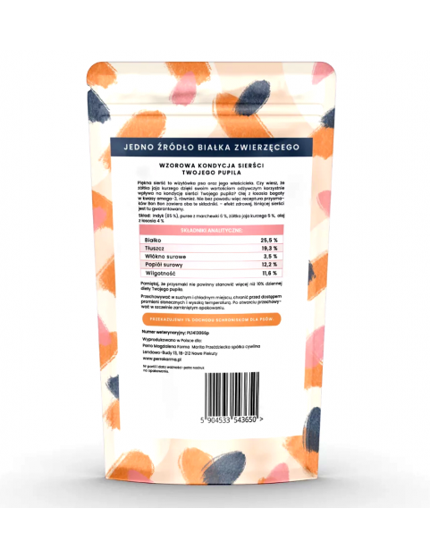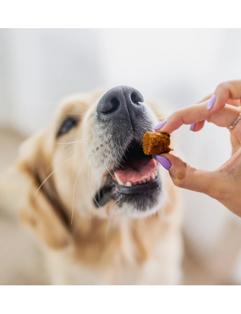Przysmaki Bon Bon bazują na delikatnym indyku (aż 85%), będącym źródłem lekkostrawnego białka i aminokwasów niezbędnych do regeneracji skóry i włosów. Olej z łososia to naturalne źródło kwasów Omega-3 i Omega-6, które wspierają kondycję sierści, łagodzą podrażnienia i redukują nadmierne linienie. Dodatkowo, receptura została wzbogacona o MSM – organiczną siarkę wspomagającą stawy, oraz dziką różę, znaną z działania przeciwzapalnego i regeneracyjnego. Bez gliceryny, zbóż i sztucznych dodatków – tylko naturalne dobro w każdej porcji.