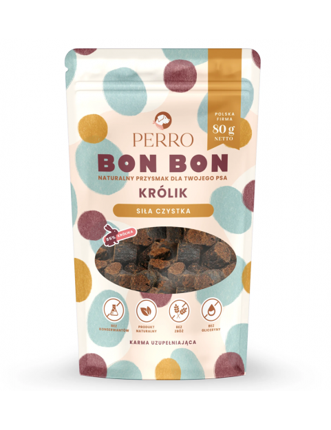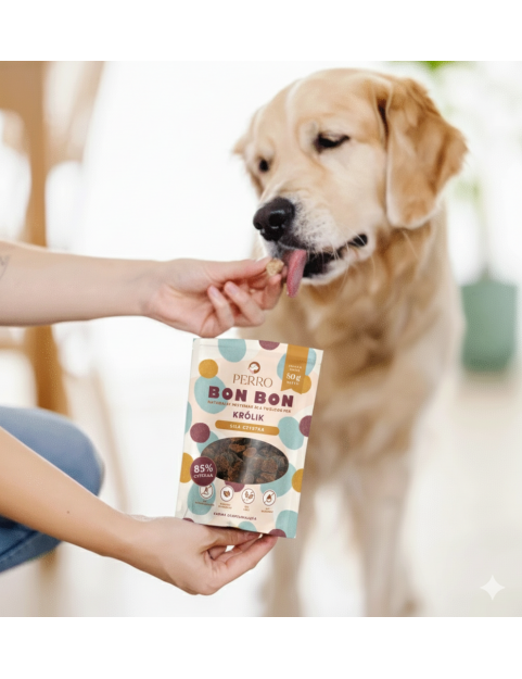 Naturalna ochrona i smak, któremu Twój pies się nie oprze. PERRO BON BON Królik – Siła Czystka to wyjątkowe przysmaki funkcyjne, które łączą delikatność mięsa królika z prozdrowotnymi właściwościami czystka i dyni. Stworzone z myślą o psach z wrażliwym układem pokarmowym i skłonnościach do alergii, zapewniają codzienne wsparcie odporności oraz zdrowia skóry i sierści.