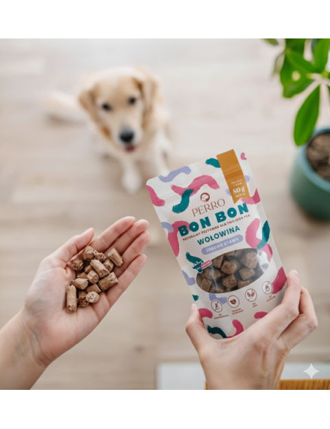 Dbaj o stawy swojego psa każdego dnia. PERRO BON BON Wołowina – Zdrowe Stawy to przysmak, który wspiera mobilność, regenerację i witalność – z miłości do zdrowego ruchu i radości życia Twojego pupila.