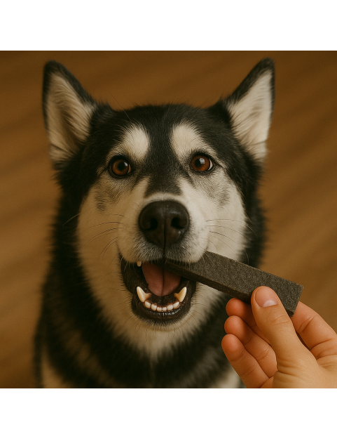 W 96% składają się z wysokiej jakości mięsa z koniny – źródła lekkostrawnego białka, żelaza i witamin z grupy B, które wspierają odporność i kondycję mięśni. Dodatek kolagenu wspomaga stawy, sierść i skórę, a półmiękka struktura batonów sprzyja redukcji płytki bakteryjnej, pomagając utrzymać zdrowe zęby i świeży oddech. Bez zbóż, glutenu i sztucznych dodatków – tylko to, co naturalne i dobre dla psa.