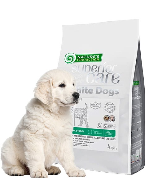 Biała sierść to prawdziwa ozdoba Twojego psa – symbol elegancji, czystości i zdrowia. ? Niestety, delikatne białe włosy są podatne na przebarwienia i podrażnienia skóry. Nature’s Protection SC White Dogs Grain Free Insect to innowacyjna, bezzbożowa karma stworzona specjalnie dla psów o białym umaszczeniu, w każdym wieku i każdej wielkości. Jej unikalny skład pomaga redukować plamy łzowe, wspiera zdrowie skóry i zachowuje nieskazitelną biel sierści.