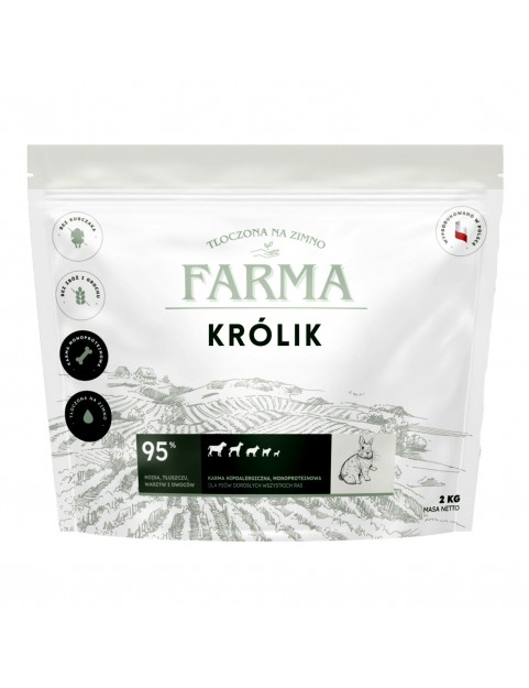 Bo Twój pies zasługuje na zdrowie prosto z natury. Farma Adult Królik to wyjątkowa karma tłoczona na zimno, stworzona specjalnie dla dorosłych psów o wrażliwym układzie pokarmowym. Dzięki delikatnemu mięsu z królika i starannie dobranym roślinnym dodatkom, dostarcza wszystkiego, czego potrzebuje Twój pupil, by cieszyć się energią, spokojnym trawieniem i błyszczącą sierścią – każdego dnia.
