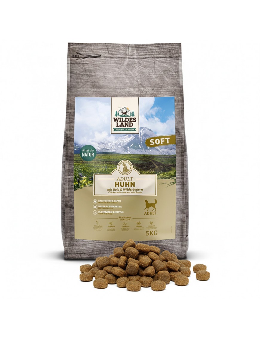 Kiedy kochasz, wybierasz mądrze. Każdy posiłek to chwila troski o zdrowie i radość Twojego psa. Wildes Land Softfutter Huhn z ryżem i dzikimi ziołami łączy smakowitość z naturą, aby Twój pupil cieszył się energią na każdy dzień.