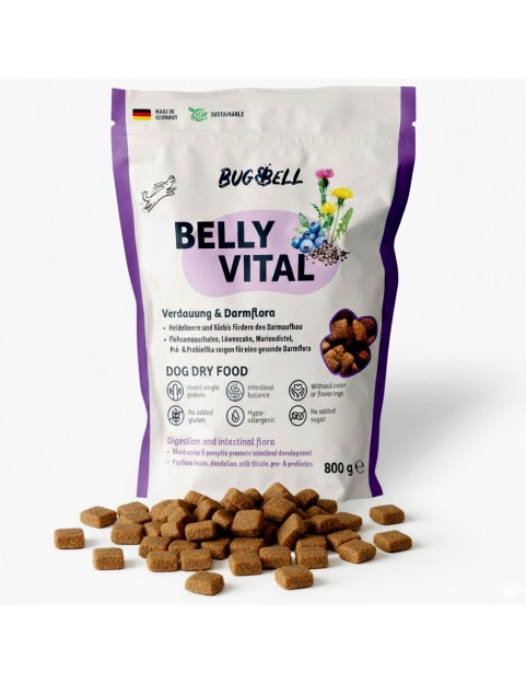 Wrażliwy brzuszek Twojego psa wymaga wyjątkowej troski. BugBell Violett BellyVital to funkcjonalne przysmaki stworzone specjalnie dla psów z nietolerancjami pokarmowymi oraz skłonnością do problemów trawiennych. To smaczna przekąska, która nie tylko rozpieszcza, ale realnie wspiera zdrowie układu pokarmowego.